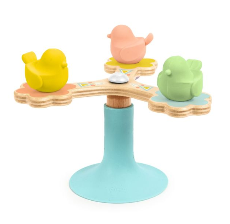 BabySpini is a spinning developmental toy with suction cup made of natural wood in pastel colours for ages 12 months and up. Your child can start it spinning with their hand and have fun turning the 3 birds quickly and keeping them going for ages. It’s fascinating to watch!