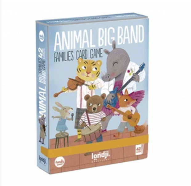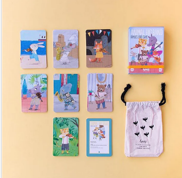 Animals Big Band Cards made in Barcelona by Londji. Let's play music! Which family of musicians will you be part of? Bears, elephants, tigers, rhinoceroses, foxes, rabbits, mice ... Everyone gets together to create a great band! Gather them all with this family card game. Whoever manages to group all the members of the same family wins! . A game for the little ones to learn the different musical instruments while having fun.