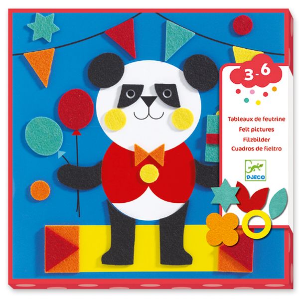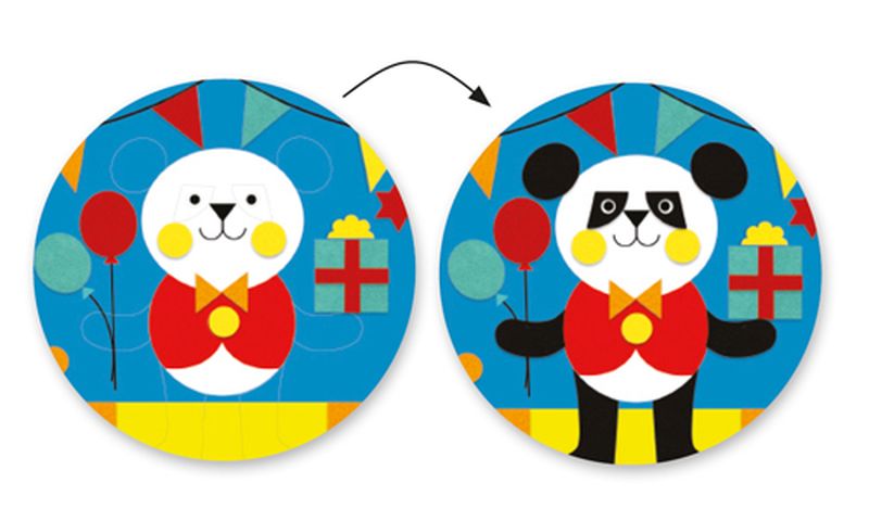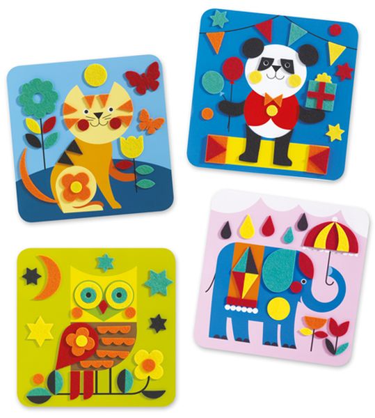 Children assemble and superimpose felt stickers to create four scenes of cute colourful animals.