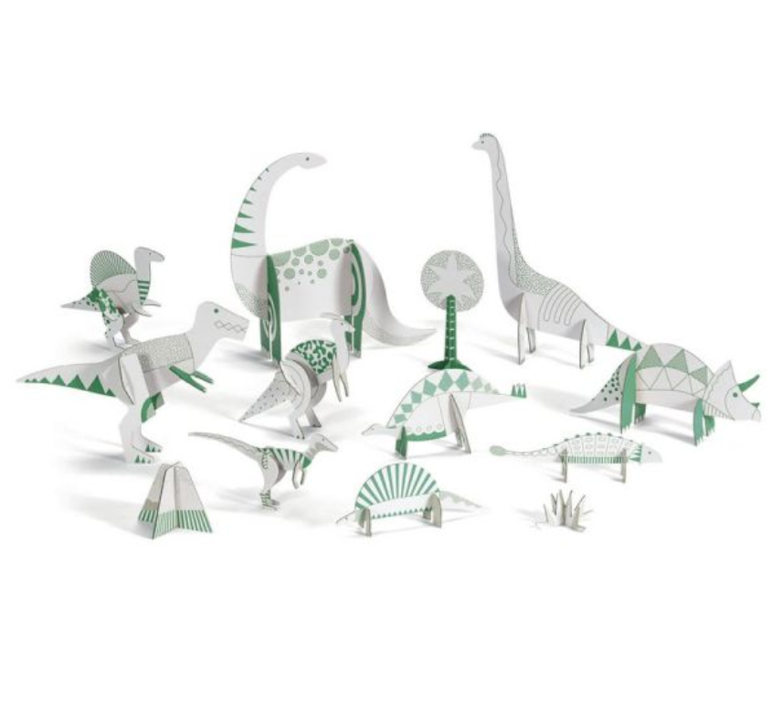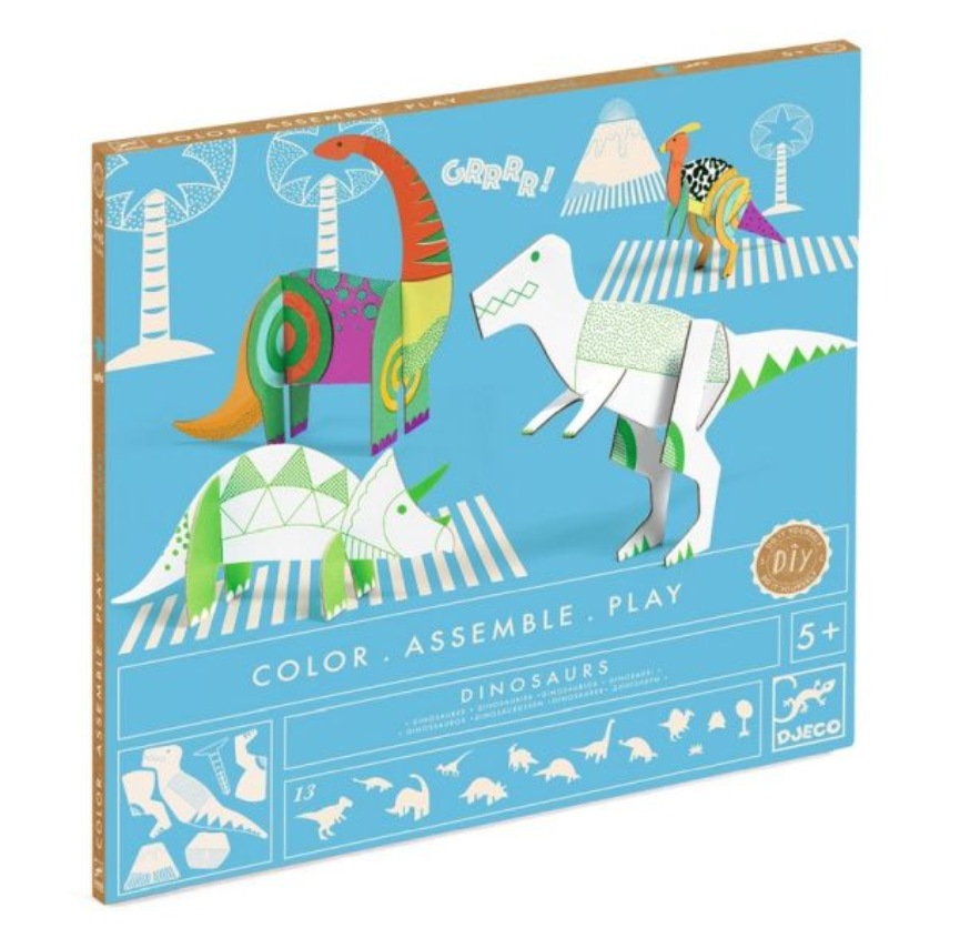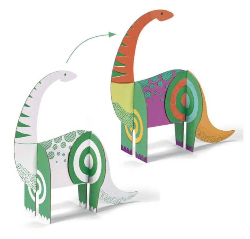 A creative kit with a multitude of cardboard pieces to colour and assemble to make dinosaurs. The child plays with all the elements he or she makes and it's the start of fabulous stories!
