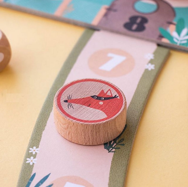 Designed and manufactured in Catalonia by Londji. Includes 1 game board (22x71cm), 1 wooden fox, 1 wooden die, 24 wooden eggs and 4 egg cartons.