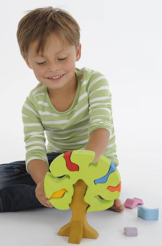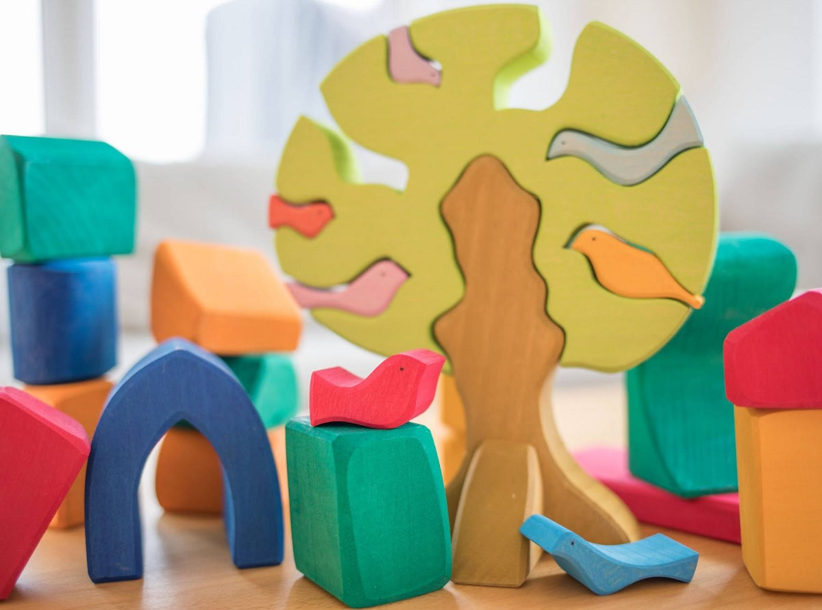 Gluckskafer 9 piece bird tree blocks including 7 birds,