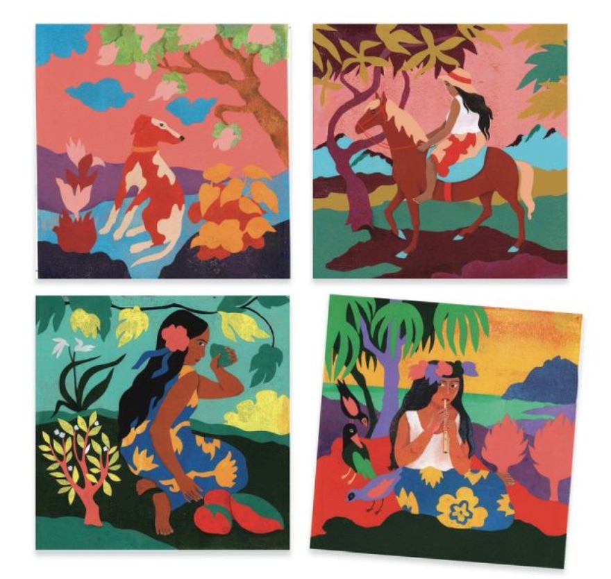 A painting activity that invites children to discover the style of Paul Gauguin, the great post-impressionist master. Little by little, colour is added to the paintings, bringing the women of Tahiti to life.