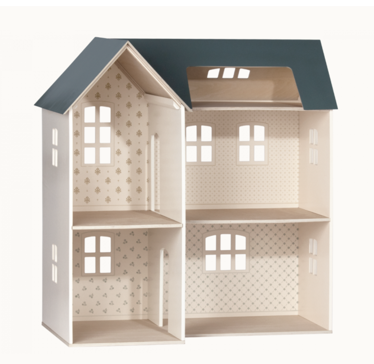 Our beloved Maileg dollhouse is back with beautifully decorated walls and an updated design. Products that fit into the house include: Bunny/Rabbit size 1, 2, micro, my, Teddy family and furniture and accessories in size miniature.Includes a small tool kit for constructing.