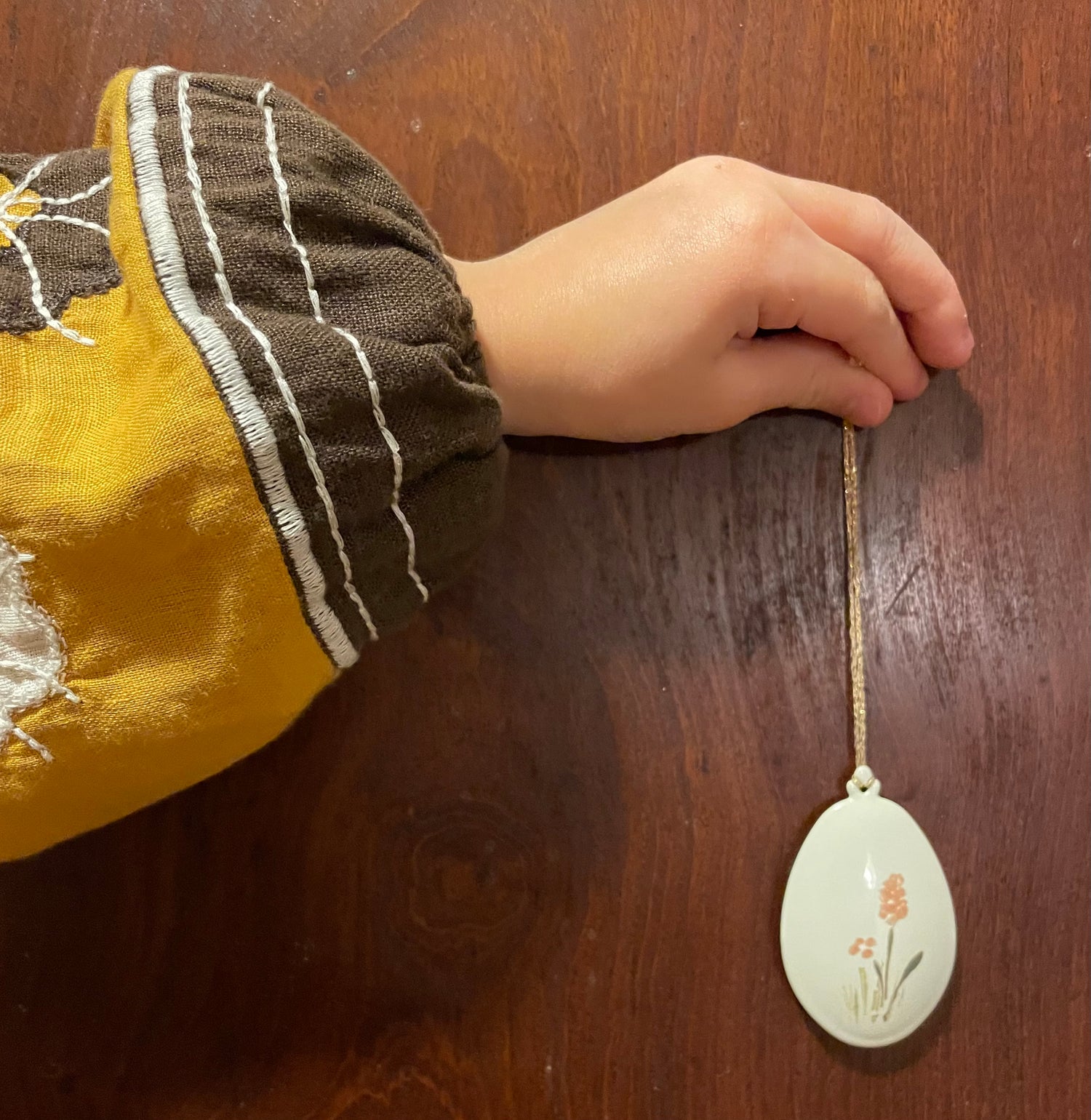 Metal Easter egg ornament with hand-painted details.
