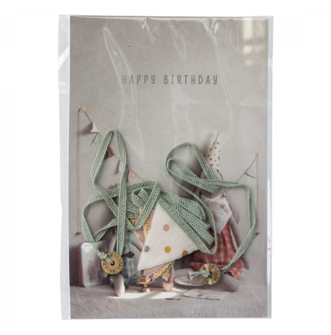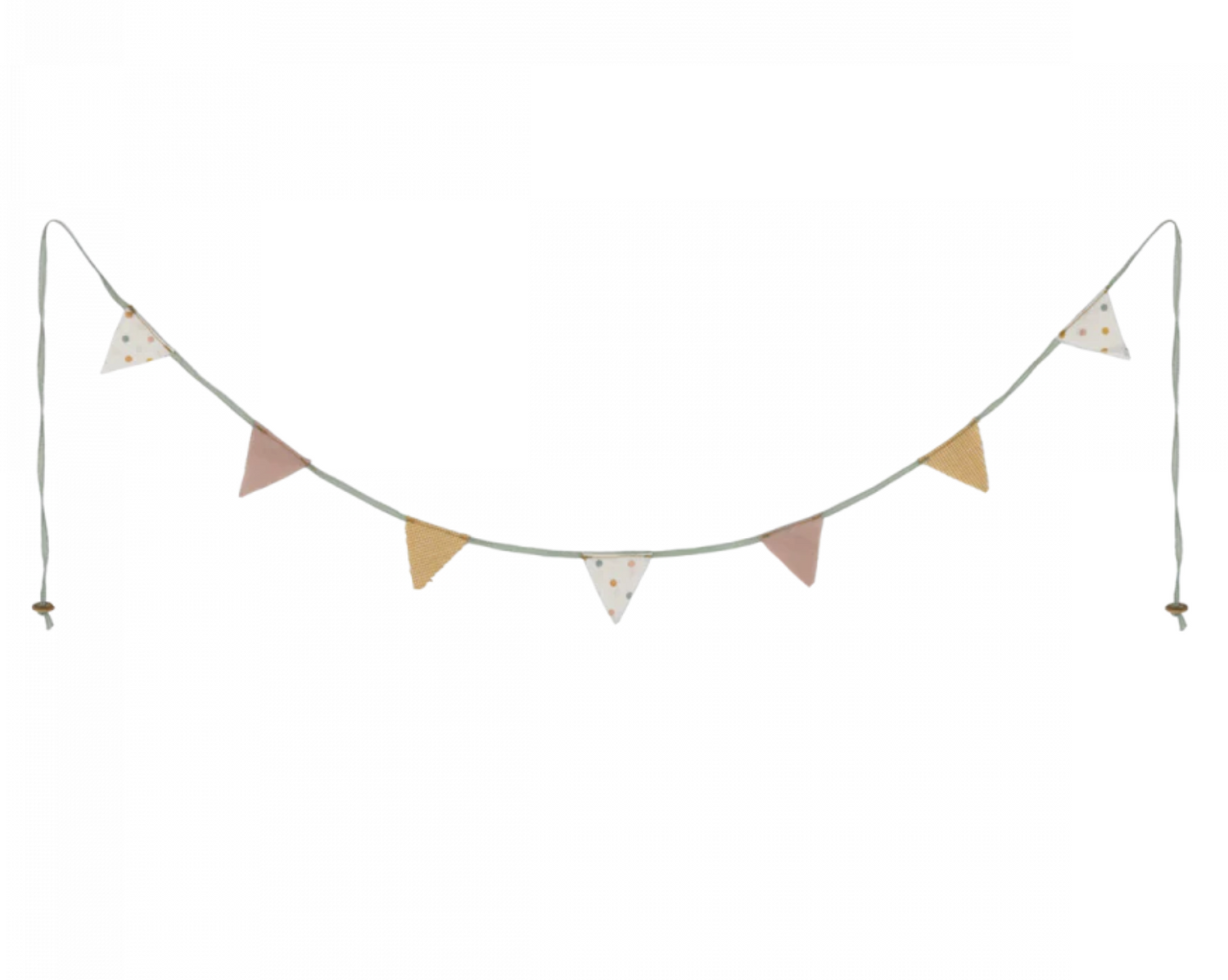 This mini garland is made to decorate wherever you find it suitable in your Maileg House of Miniature. Put it in the living room or on the terrace. You decide! It has 7 fabric flags. Length is 85 cm.