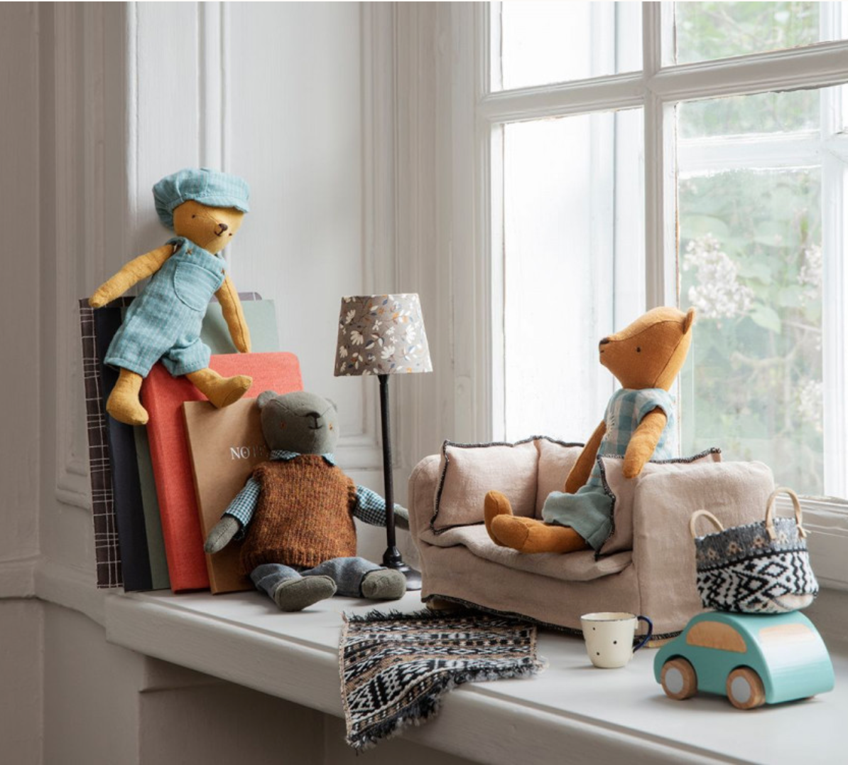 Our beautiful Maileg Miniature Floor lamp is a must-have. The lamp will light up the room with a soft tone - remember to turn off the light when your friends go to bed.