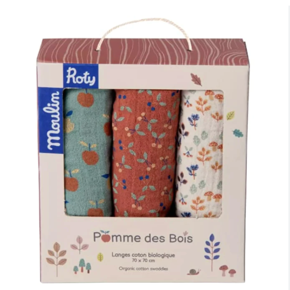 Organic Cotton Swaddle Set 3 Forest Apple By Moulin Roty