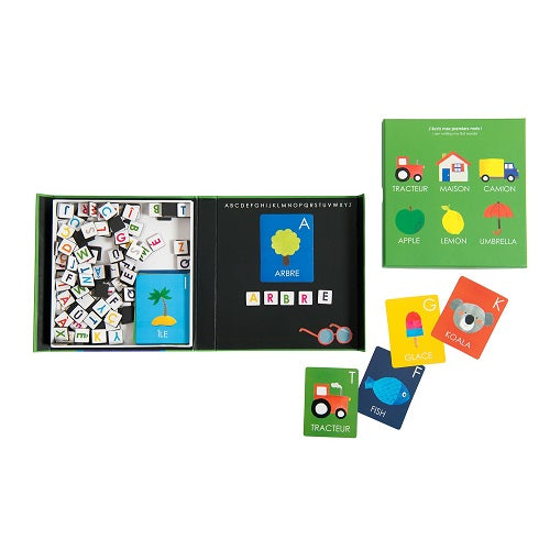 Welcome to the Popipop learning collection by Moulin Roty. Magnetic box is a excellent work station for exploring the alphabet using brightly coloured magnets and prompt cards. Magnetic cardboard game to discover the alphabet and reproduce your first words! On the magnetic plate, form the words using 168 letter magnets, following the 26 cards illustrated in Popipop colours, in French / English! Measures approx 18.5 x 20 cm. Safety rated for children 3 years old +.