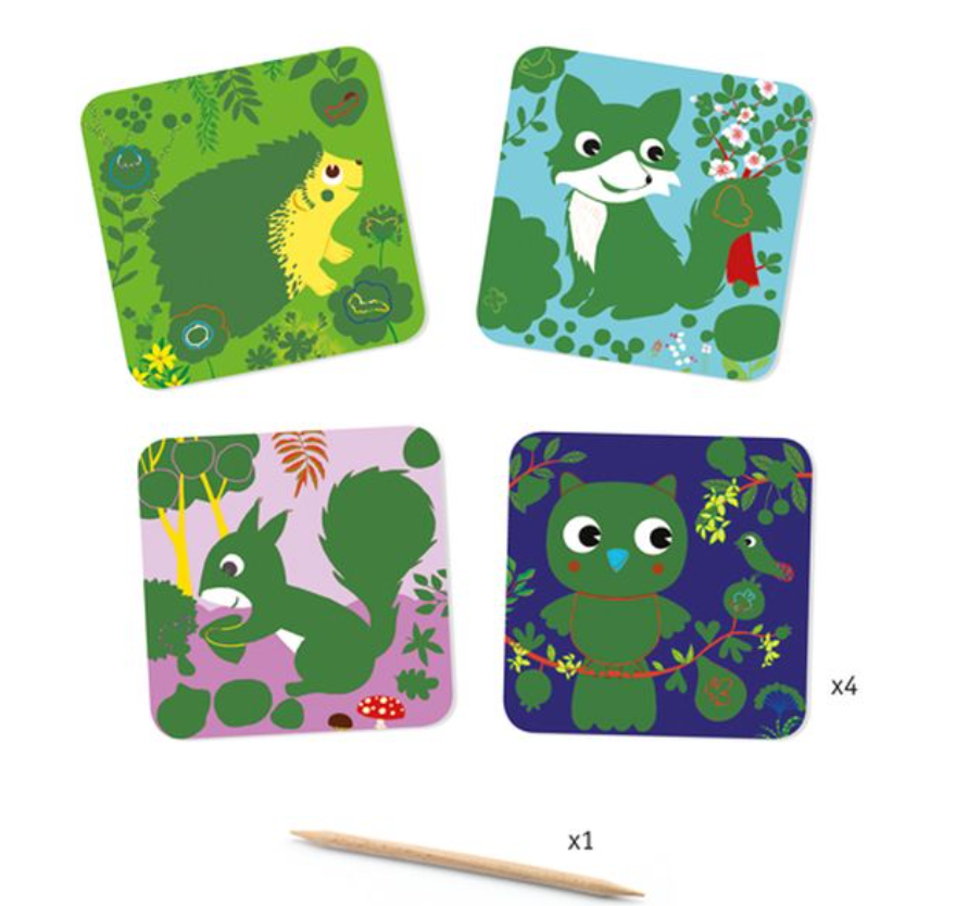 Scratch the cards to reveal the drawings. Surprise! Contents: 4 scratch cards, 1 stylet and 1 instructions book