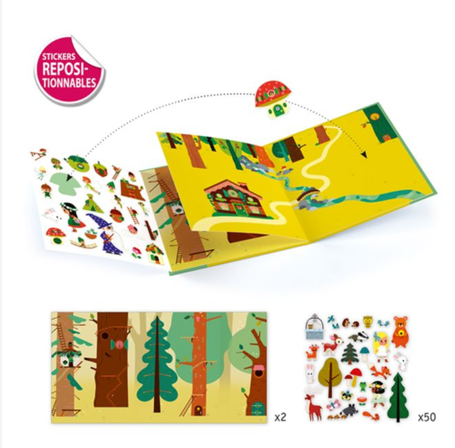 2 large panoramas to complete with repositionable stickers to invent stories.