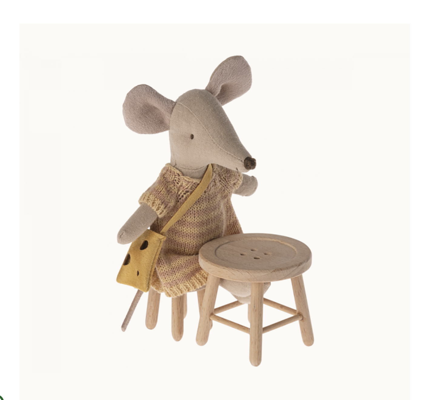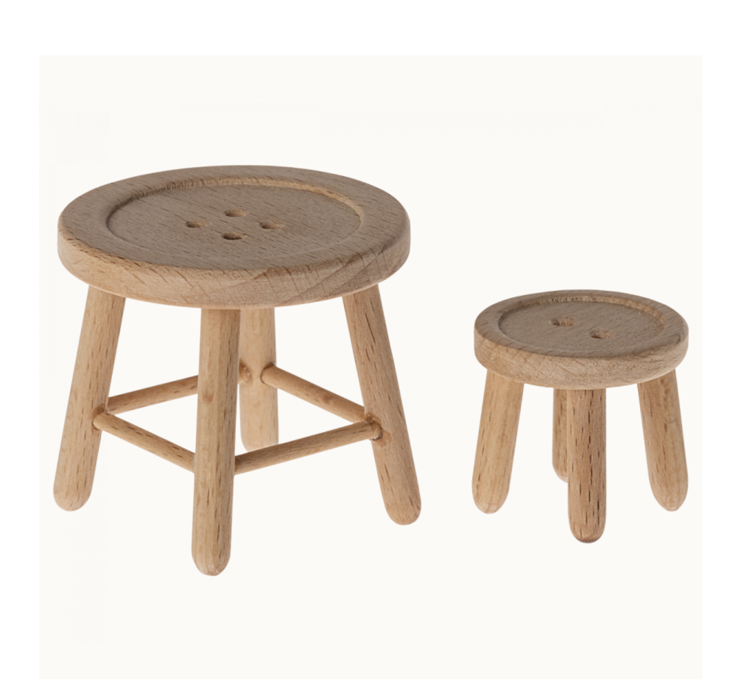 A stool and table set made for the mouse family. It is inspired by buttons and can be mixed with other mice furniture and accessories to create a lovely home. It fits perfectly into the Mouse hole Farmhouse.
